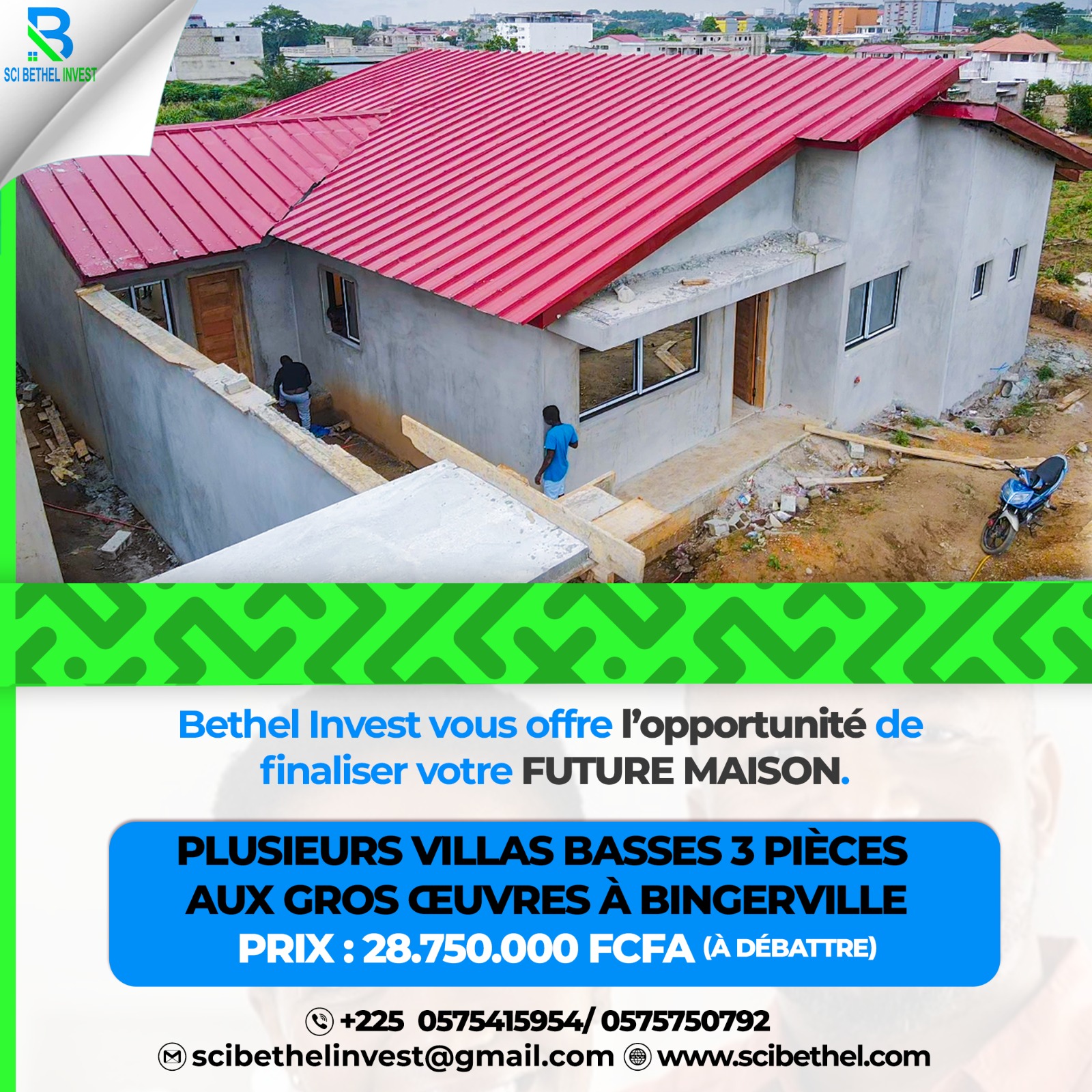 Construction et Vente de Maisons PLUSIEURS VILLAS BASES 3 PIECES AU GROS OEUVRES A BINGERVILLE A débattre. Voir plus